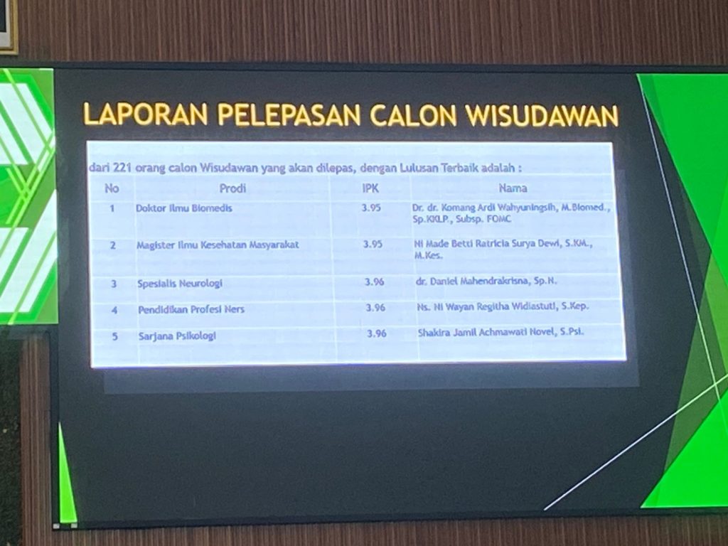 Penghargaan tersebut diserahkan langsung oleh Dekan Fakultas Kedokteran Universitas Udayana, Prof. Dr. dr. I Gede Eka Wiratnaya, Sp.OT(K), sebagai bentuk apresiasi atas capaian akademik yang luar biasa. Dengan Indeks Prestasi Kumulatif (IPK) 3,96, dr. Daniel membuktikan dedikasi dan ketekunan luar biasa selama masa pendidikannya.