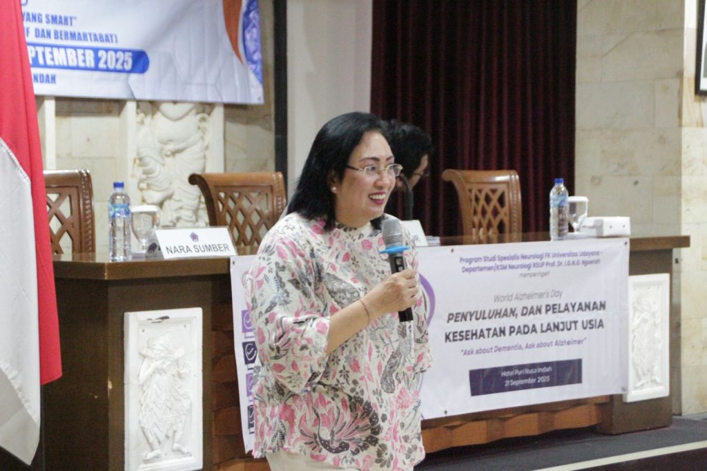 Dalam rangka memperingati World Alzheimer’s Day, Program Studi dan Departemen Neurologi FK Universitas Udayana bekerja sama dengan RSUP Prof. I.G.N.G. Ngoerah menyelenggarakan kegiatan Pengabdian Masyarakat Seminar Kesehatan dan Penyuluhan dan Pelayanan Kesehatan Pada Lanjut Usia. Acara ini sekaligus dirangkaikan dengan HUT ke-16 Perhimpunan Wreda Sejahtera (PWS) Kota Denpasar dan berlangsung di Hotel Puri Nusa Indah, pada Minggu, 21 September 2025, pukul 09.00–12.00 WITA.